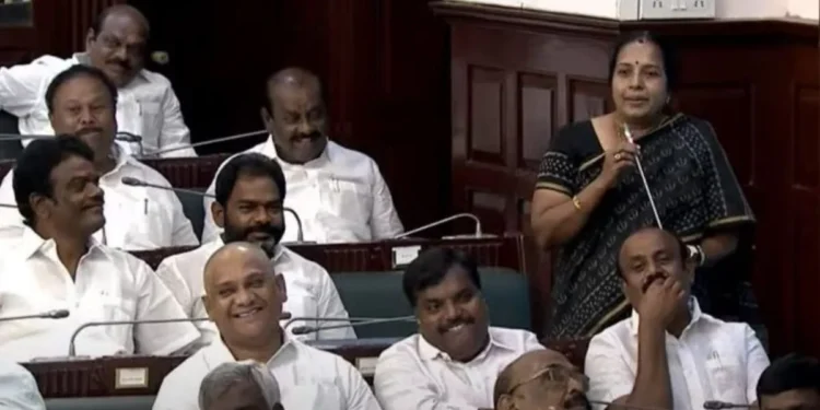 தமிழ்நாடு  சட்டப்பேரவையில் அடுக்கடுக்கான  கேள்விகளை  கேட்ட துரைமுருகன்..!!  வெளிநடப்பு  செய்த  வானதி ஸ்ரீனிவாசன்..!!