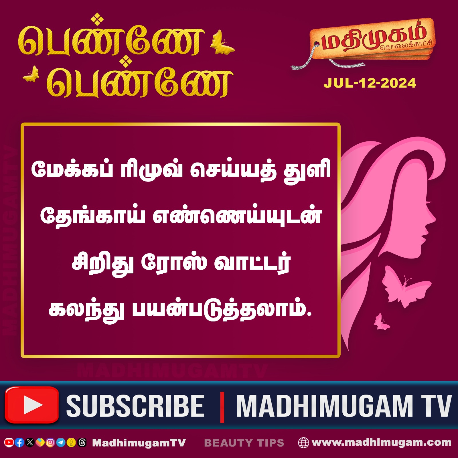 Tags: #மதிமுகம் அப்டேட்Beauty TipsCooking Tipsஅழகு குறிப்புசமையல் குறிப்பு