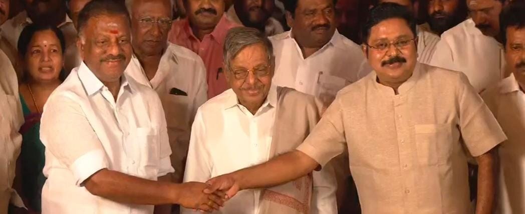 தனி தனியாக செயல்பட்ட இருவரும் சேர்ந்து செயல்படுவது என முடிவெடுத்துள்ளதாக பண்ருட்டி ராமச்சந்திரன் தெரிவித்தார். தொடர்ந்து செய்தியாளார்களை சந்தித்த டிடிவி தினகரன் CPI CPM போல சேர்ந்து செயல்பட முடிவெடுத்துள்ளதாகவும், உண்மை தொண்டர்களிடம் கட்சி இருக்க வேண்டும்