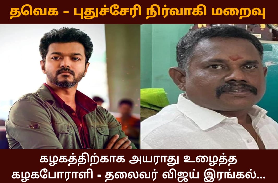 தவெக புதுச்சேரி நிர்வாகி மறைவு…!! தலைவர் விஜய் இரங்கல்..!!